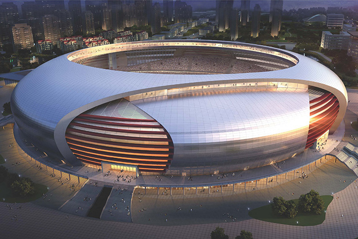 項目位于仁皇山新區,東臨太湖路,南為仁北路,西至德清北路,北隔外環北路接長田漾濕地公園,總投資約50000萬元,總建筑面積約116100㎡,其中體育場建筑面積85595㎡,游泳館建筑面積15474㎡,其他15000㎡。